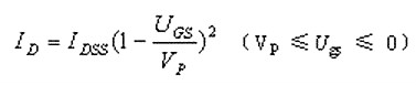 式中IDSS為飽和漏電流,VP為夾斷電壓。