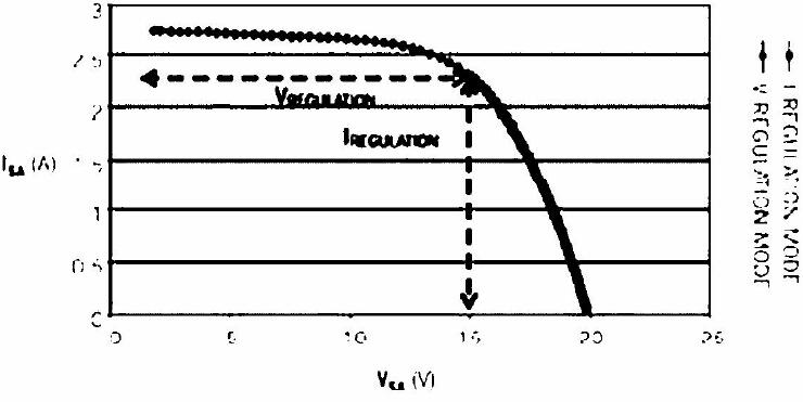 本電路適用于描述有兩種電源模式的光伏電池模塊的特性。采用本電路和基于PC的設置時, Helios公司的一種光伏電池模塊的I-V特性曲線表明有一個區在VMPP ( 最高點的電壓) 以上, 在VMPP 這一電壓下, 陡峭的過渡與一個電壓源相對應( 圖2) 。在低于VMPP的電壓下, 光伏電池模塊猶如一個電流源。一般情況下, 用個簡單的電流模式電子負載描述I - V 特性曲線這一平坦區的特性是很困難的, 因為電壓輸出對電流的微小變化很敏感,因此, 恒定電壓模式負載就是一種較好的選擇。