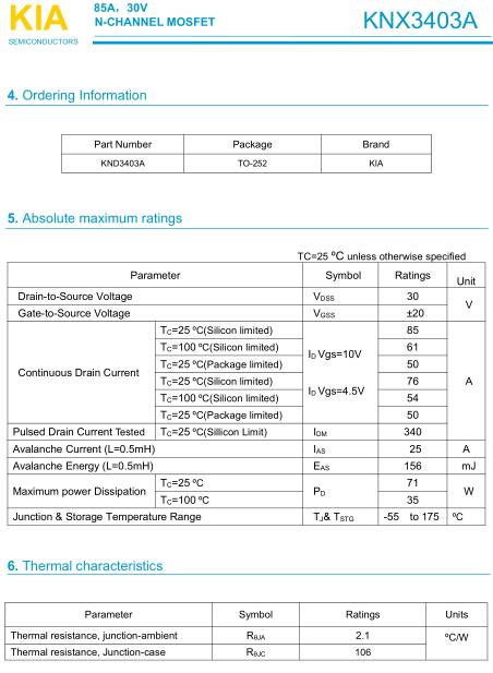 無人機MOS管 3403A 85A?/30V?型號參數規格書-原廠直銷 免費送樣-KIA MOS管