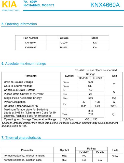 充電器MOS管 KNX4660A 7A/600V產品規格書-貨源穩定 免費送樣-KIA MOS管