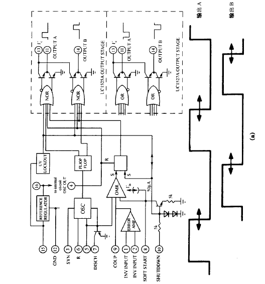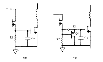 如上所述 ,柵極驅動電路必須能輸出電流 ,即成為 “ 源”。同時,為了提供柵極反向電壓,MOS驅動電路必須能從柵極抽取電流 ,即成為 “ 匯”。大部分早期的 PWM 芯片 ( SG1524 系列) 的驅動電路,不能同時抽取和輸出電流。即不 能同時成為漏極導通和關斷的 “ 源” 和 “ 匯”。圖 9.6 ( a ) 中的電路說明了這一點。