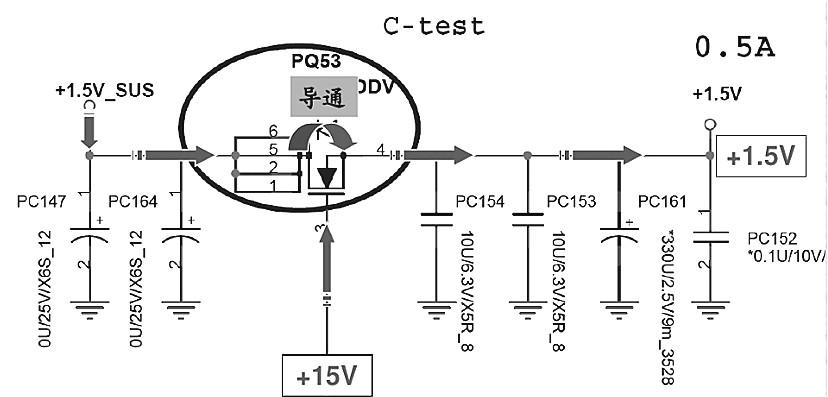 4.mos開關完成電壓通斷的例子由+1.5V-SUS產生+1.5V電路