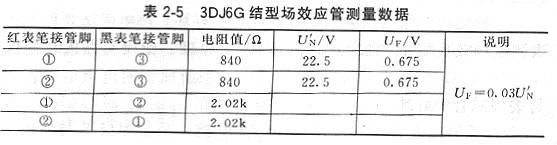 例如,選擇500型萬用表R Xl00擋斷定3DJ6G結型場效應管的電極。為敘說便當,現依照管子的底視圖,從管殼突起處順時針方向給3個管腳編上序號①、②、③,全部丈量數據見表2-5。表可見,當黑表筆接③時兩次測出的都是正向電阻,由此斷定③為柵極,且兩個PN結的正向壓降都是o.675V。其他兩腳分別是源極和漏極,可互換運用,普通不用再辨別了。對3DJ6G而言,①腳是源極,②腳是漏極。