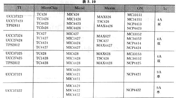 在理論上,集成化的柵極驅動器件的應用更為普遍。用于VMOS驅動的集成化器件大致有圖5. 84所示的幾類,它們的基本特性如表5.9所示。