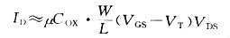 當VDS處于OV左近時,精確地說,是當VDS《2(VGS-VT)時,式(1.1)右邊的第2項能夠疏忽不計,能夠近似為下式:
