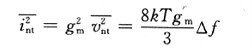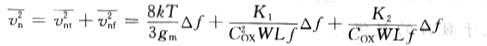 同時(shí)考慮熱噪聲和1/f噪聲時(shí),MOS晶體管的噪聲電壓可表示為
