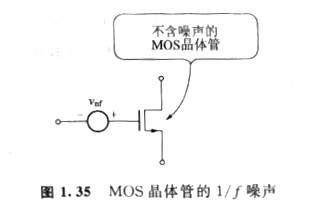 如圖1. 35所示,MOS晶體管1/f噪聲可以用不含噪聲的MOS晶體管以及接在柵極上的電壓源來(lái)表示,這時(shí)柵極換算噪聲電壓tνnf用下式給出: