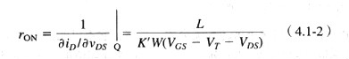 式中,VDS比VGS - VT小,但是比零大(VDS為負(fù)時(shí),VGS變?yōu)?VGD)。小信號(hào)溝道電阻由下式給出: