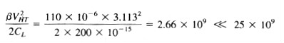 考慮這樣一種情況,Vφ為高電平的時(shí)間T=0.1μS,C=0.2pF,那么導(dǎo)通電阻rON必須小于100kΩ才能滿足電荷轉(zhuǎn)移時(shí)間等于5倍時(shí)間常數(shù)。對于5V的時(shí)鐘擺幅和2.5V的Vin以及圖4.1-4中示出的W=L的MOS管,rON≈6.4kΩ。此值在所要求的時(shí)間內(nèi)進(jìn)行電荷轉(zhuǎn)移來說已足夠小。我們希望開關(guān)盡可能小(即具有最小的WxL),從而可以減小來自柵極的電荷饋通。
