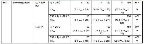 線性調(diào)整率是輸入電壓有一定的變化范圍,那么輸出電壓變化多少,如下圖是7805的線性調(diào)整率