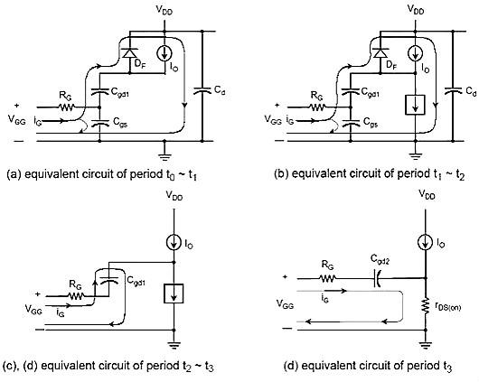 上升時間tr— uGS從uT上升到MOSFET進入非飽和區的柵壓UGSP的時間段;