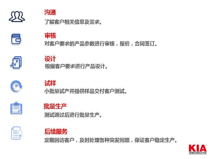 KIA半導體擁有從研發到制造封裝,再到倉儲和物流等一體化團隊,讓客戶從一個想法變成成品,提高客戶產品技術競爭力與性價比。