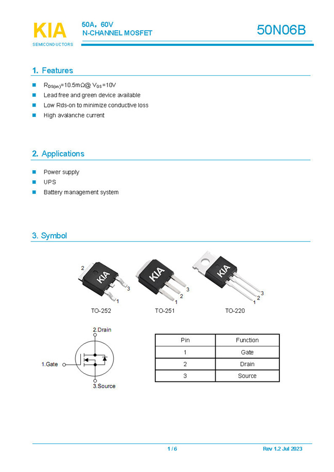 關鍵詞: KIA50N06B