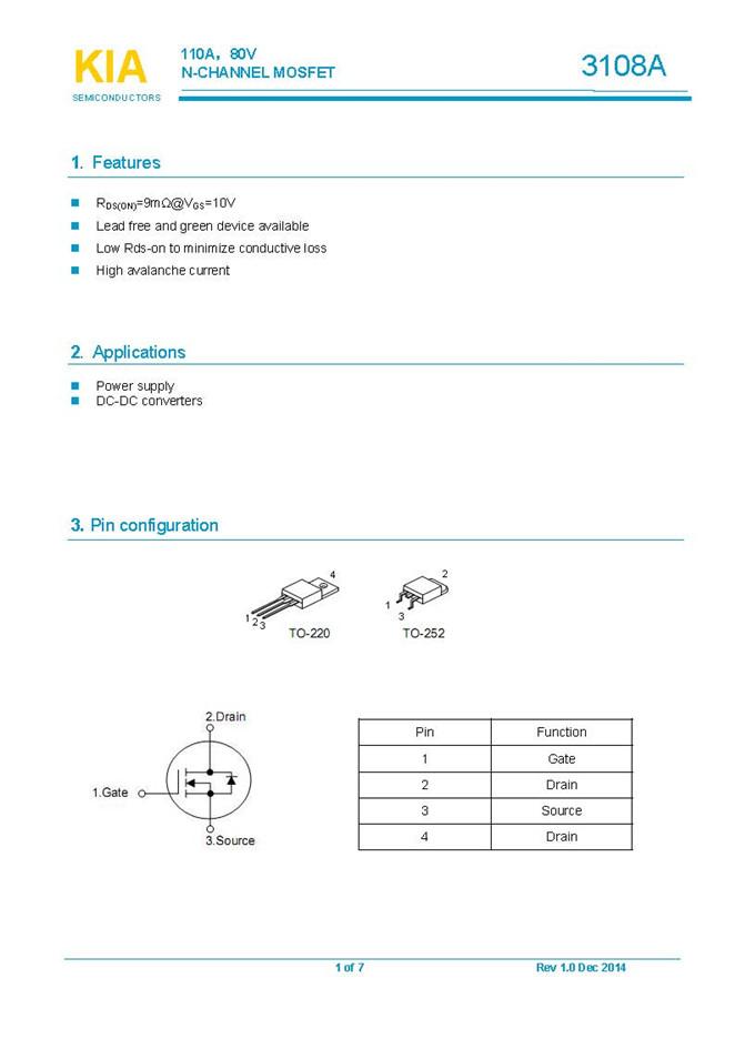 參數: ID(A): 110 BVDSS(V): 80 RDS(ON): 0.012 Qg(nC): 76 Package: TO-220 TO-252
