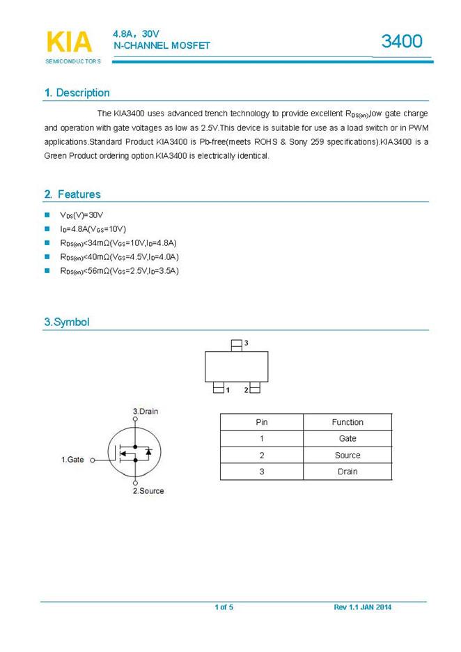 參數: ID(A): 4.8 BVDSS(V): 30 RDS(ON): 0.04 Qg(nC): 12 Package: SOT-23