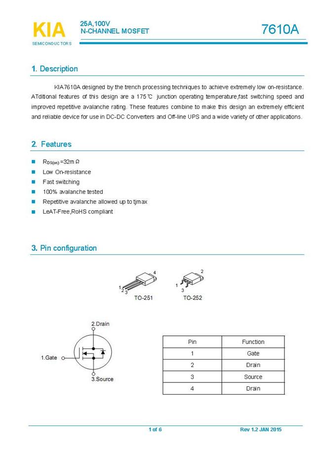 參數: ID(A): 25    BVDSS(V): 100    RDS(ON): 0.038    Qg(nC): 55    Package: TO-251、TO-252