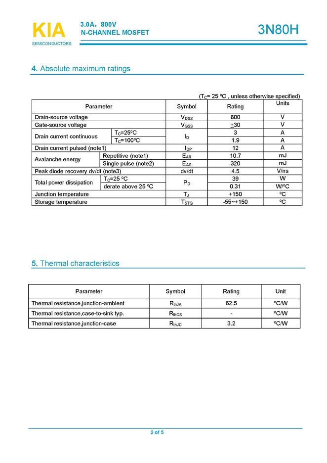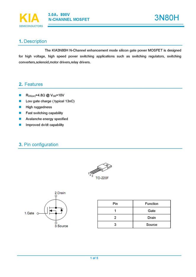 參數: ID(A): 3 BVDSS(V): 800 RDS(ON): 0.0048 Qg(nC): 13 Package: TO-220F