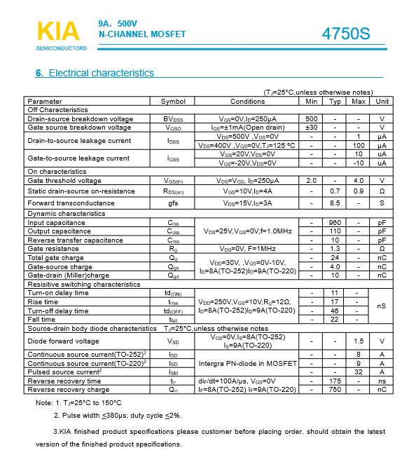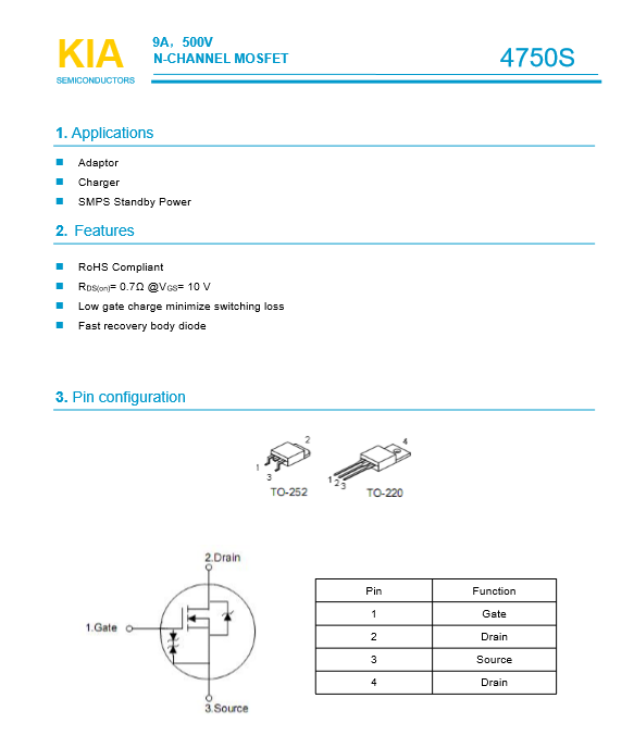 參數: ID(A): 9    BVDSS(V): 500    RDS(ON): 0.7    Qg(nC): 24    Package: TO-252 TO-220
