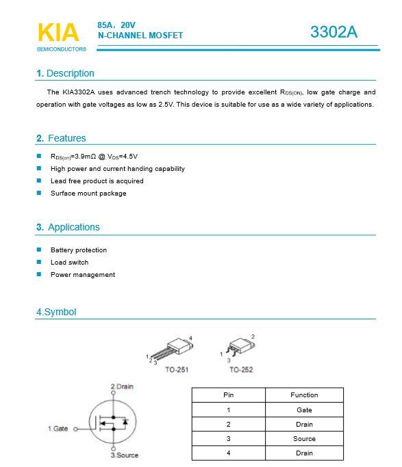 參數(shù): ID(A): 85 BVDSS(V): 20 RDS(ON): 0.0039 Qg(nC): 49 Package: TO-252