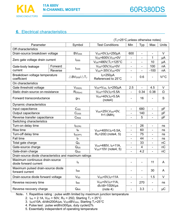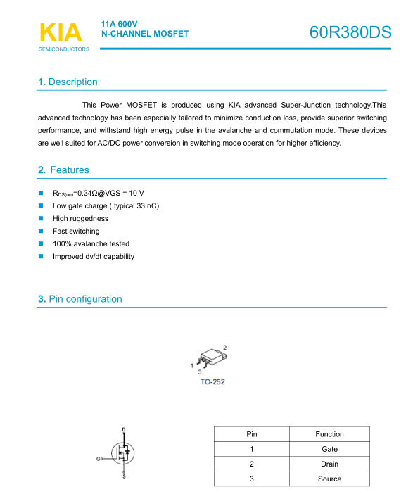 參數: ID(A): 11    BVDSS(V): 600    RDS(ON): 0.34    Qg(nC): 33    Package: TO-252