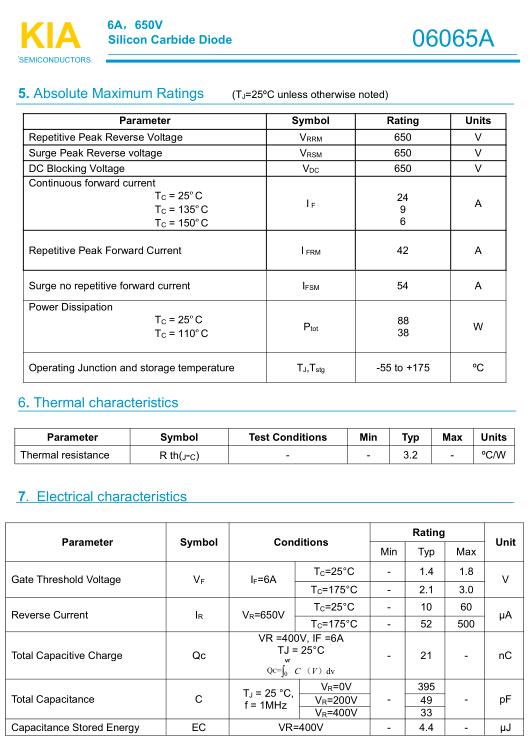 參數: IF(A): 6A VRM(V): 650V VF @ IF(V) 25℃: 24A Package: TO-220-2