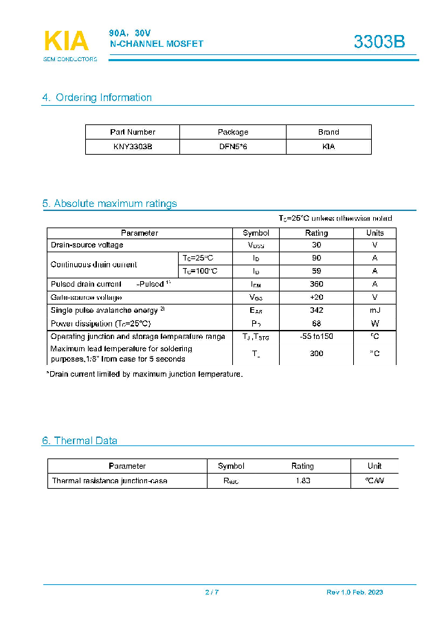 參數: ID(A): 90 BVDSS(V): 30 RDS(ON): 2.6 Qg(nC): 70 Package: DFN5*6