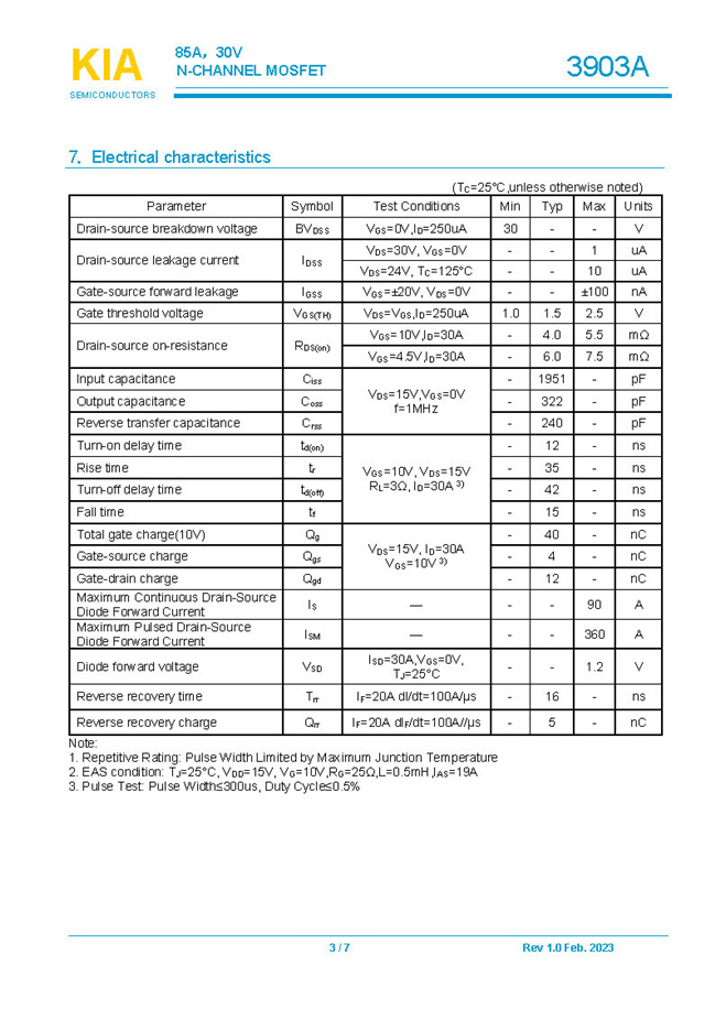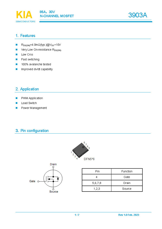 參數(shù): ID(A): 85 BVDSS(V): 30 RDS(ON): 4 Qg(nC): 40 Package: DFN5*6