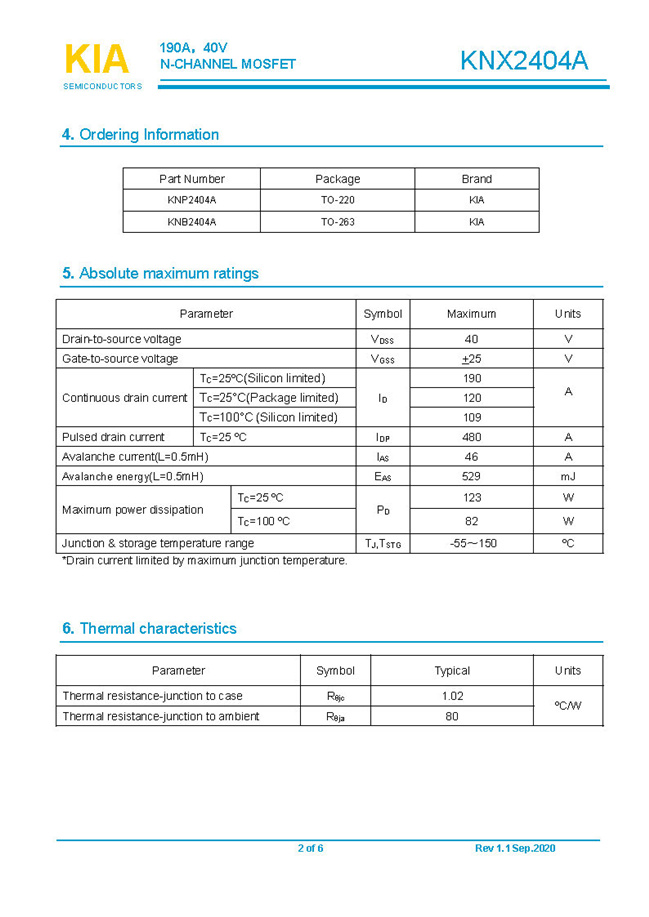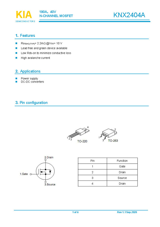 參數: ID(A): 190 BVDSS(V): 40 RDS(ON): 2.2 Qg(nC): 150 Package: TO-220/TO-263