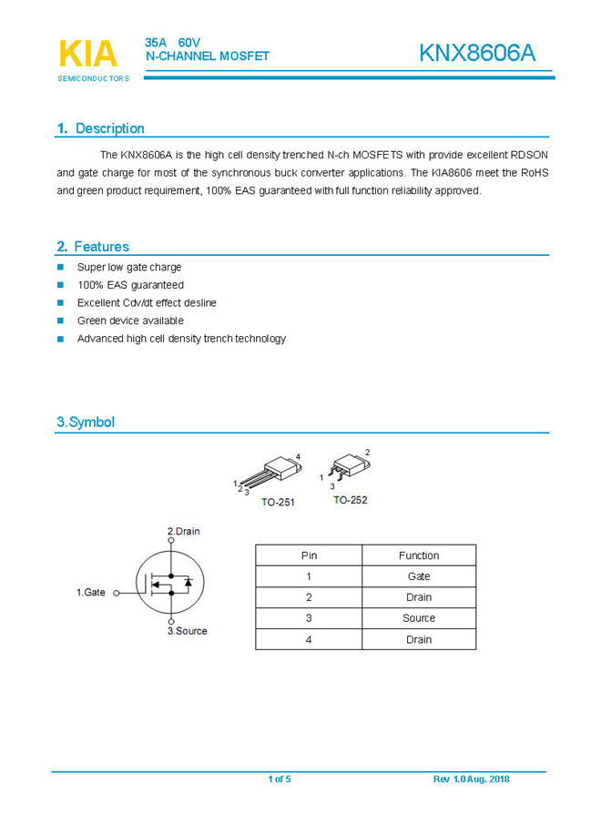 參數: ID(A): 35 BVDSS(V): 60 RDS(ON): 13mΩ Qg(nC): 19.3 Package: TO-251.TO-252