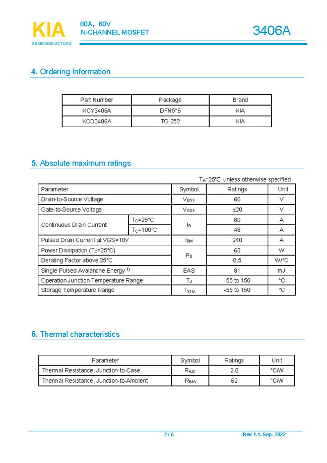 參數: ID(A): 80 BVDSS(V): 60 RDS(ON): 8.5mΩ Qg(nC): 16.8 Package: DFN5*6/TO-252