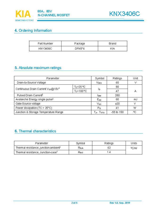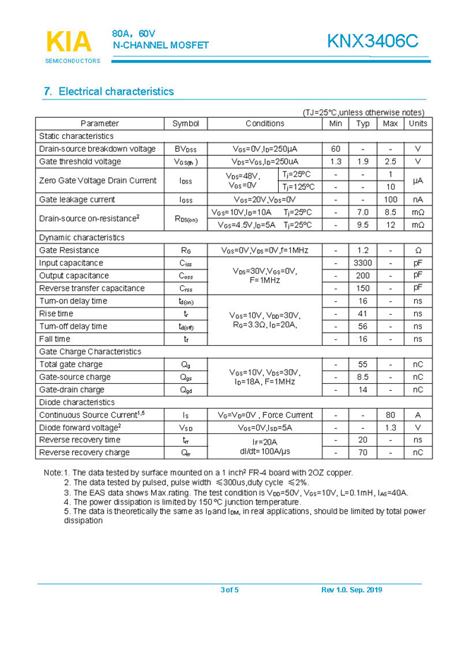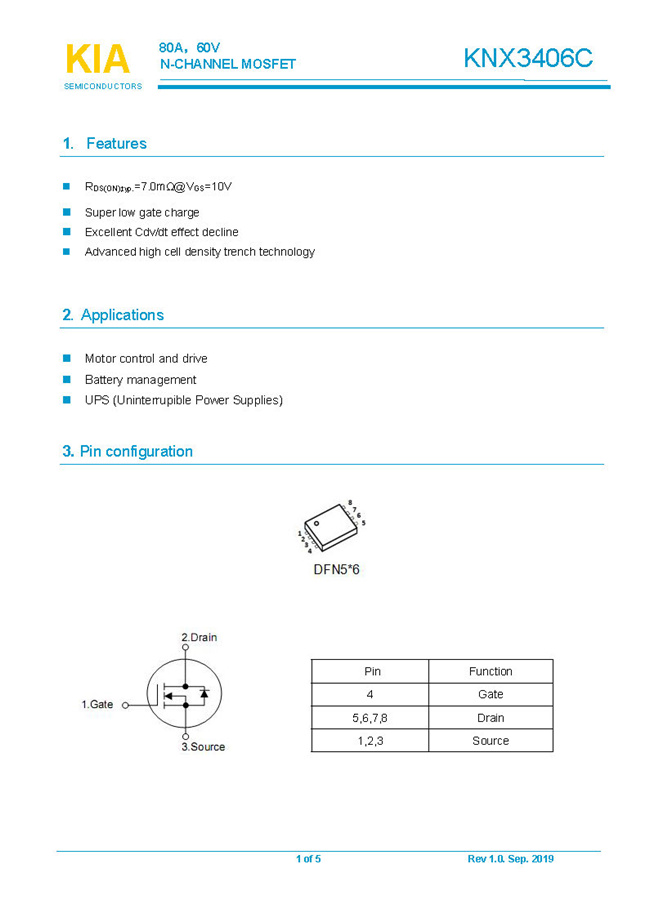 參數: ID(A): 80    BVDSS(V): 60    RDS(ON): 7.0mΩ    Qg(nC): 55    Package: DFN5*6