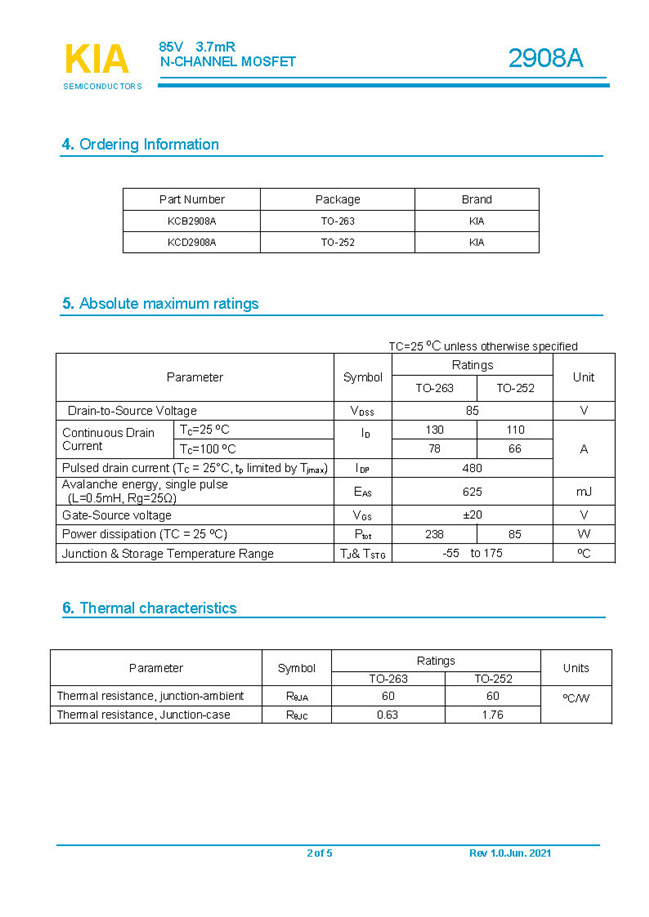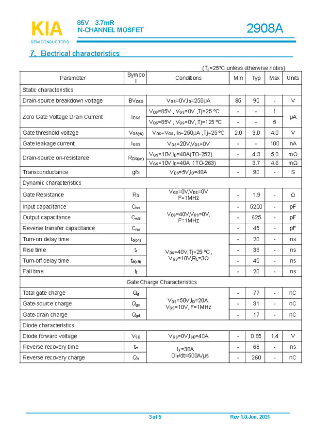 參數: ID(A): 130/110 BVDSS(V): 85 RDS(ON): 3.7mΩ Qg(nC): 77 Package: TO-252.TO-263
