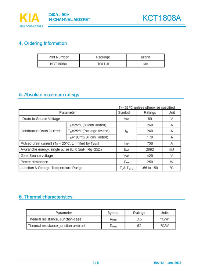 參數: ID(A): 240 BVDSS(V): 80 RDS(ON): 1.25mΩ Qg(nC): 205 Package: TOLL-8