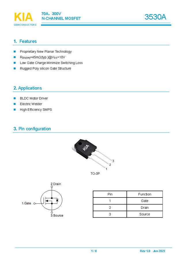 參數(shù): ID(A): 70 BVDSS(V): 300 RDS(ON): 45mΩ Qg(nC): 380 Package: TO-3P