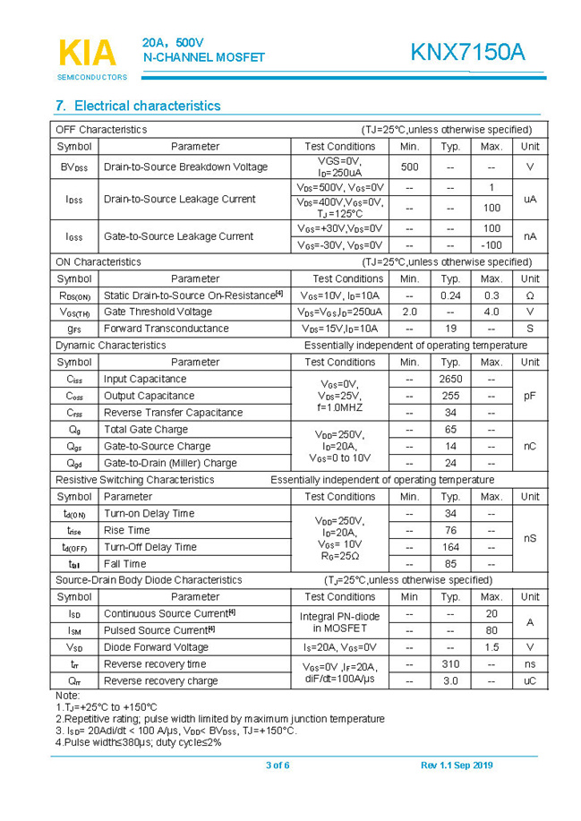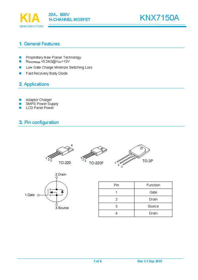 參數: ID(A): 20    BVDSS(V): 500    RDS(ON): 0.24Ω    Qg(nC): 64    Package: TO-220.TO-220F.TO-3P