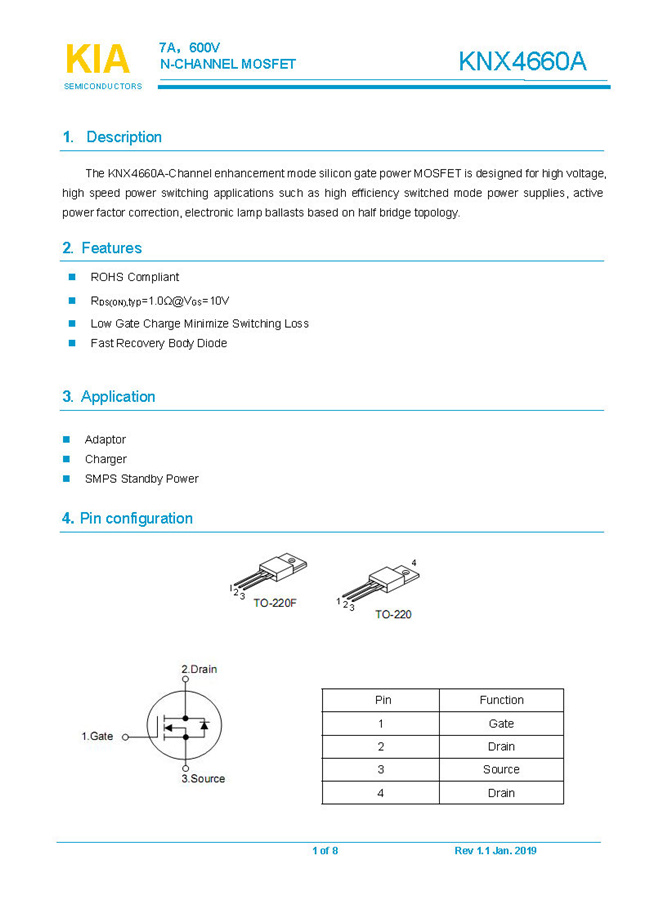 參數(shù): ID(A): 7 BVDSS(V): 600 RDS(ON): 1.0Ω Qg(nC): 19 Package: TO-220.TO-220F