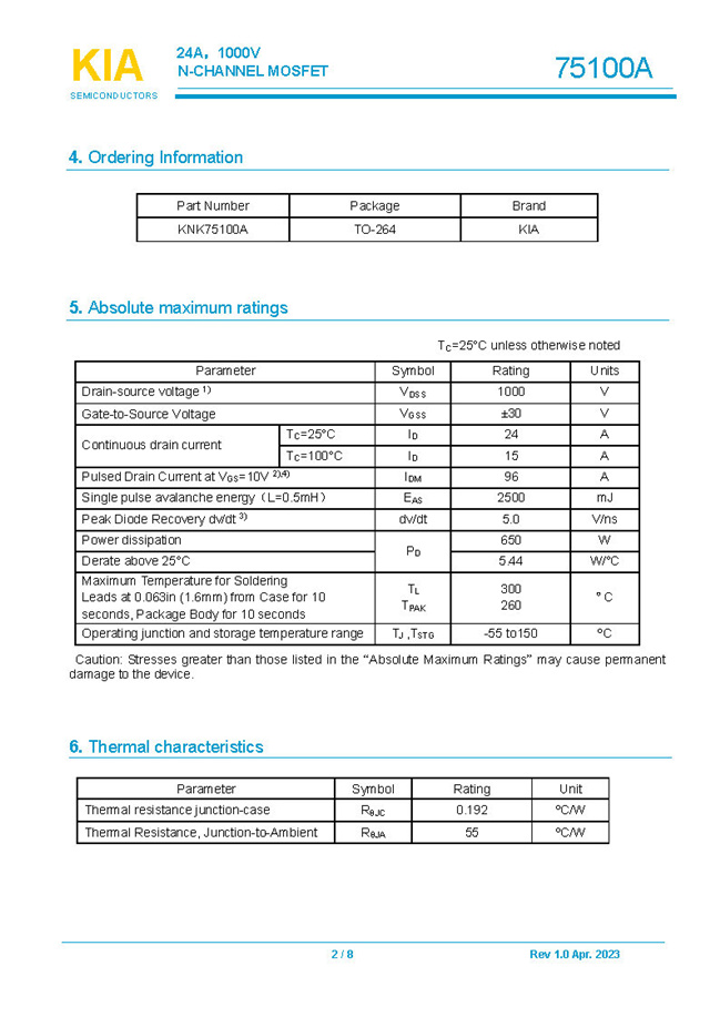 參數: ID(A): 24 BVDSS(V): 1000 RDS(ON): 380mΩ Qg(nC): 180 Package: TO-264