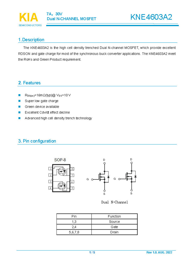參數: ID(A): 7    BVDSS(V): 30    RDS(ON): 16mΩ    Qg(nC): 4.9    Package: SOP-8