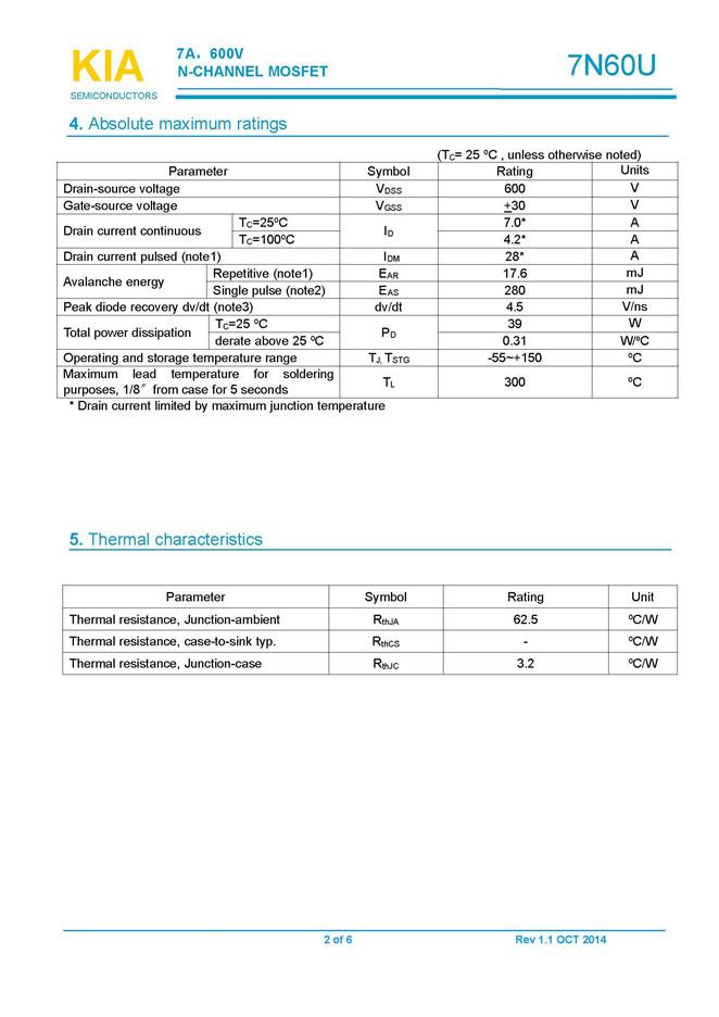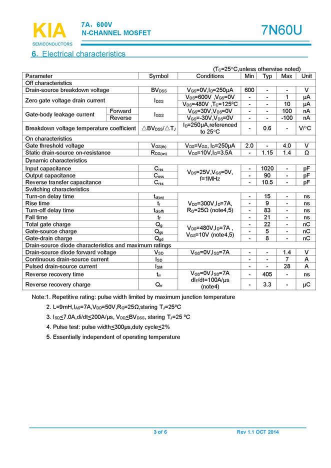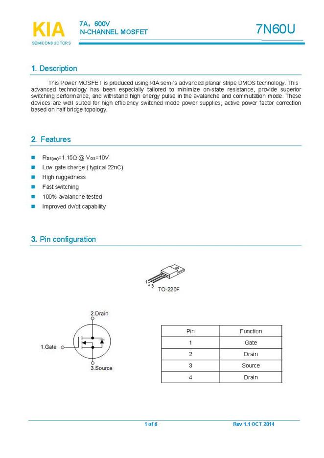 參數: ID(A): 7 BVDSS(V): 600 RDS(ON): 1.4 Qg(nC): 22 Package: TO-220F